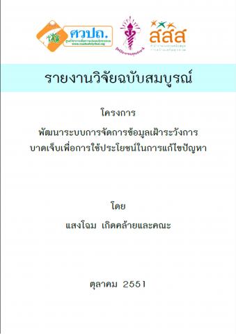 โครงการพัฒนาระบบการจัดการข้อมูลเฝ้าระวังการบาดเจ็บเพื่อการใช้ประโยชน์ในการแก้ไขปัญหา ศึกษาสถานการณ์แนวโน้มผู้บาดเจ็บจากอุบัติเหตุจากการขนส่งในประเทศไทย โดยการวิเคราะห์ข้อมูลการบาดเจ็บและการเสียชีวิตจากการขนส่งจากระบบเฝ้าระวังการบาดเจ็บรุนแรงจากเครือข่าย 28 แห่งทั่วประเทศ ผลจากการศึกษาแสดงให้เห็นถึงแนวโน้มสภาพปัญหาและปัจจัยสาเหตุของการบาดเจ็บและเพื่อใช้เป็นประโยชน์ในการวางแผนควบคุม ป้องกัน ปัญหาการบาดเจ็บและการเกิดอุบัติเหตุบนท้องถนนของประเทศไทย