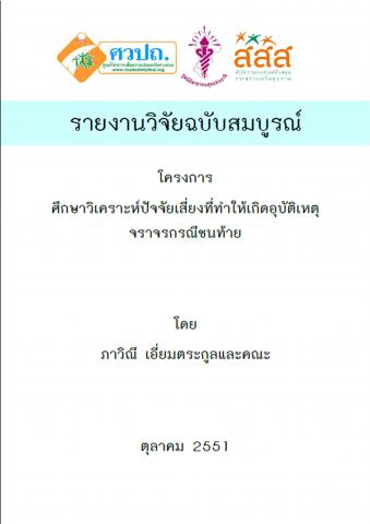 โครงการศึกษาวิเคราะห์ปัจจัยเสี่ยงที่ทำให้เกิดอุบัติเหตุจราจรกรณีชนท้าย มีวัตถุประสงค์เพื่อศึกษารวมรวบสถิติข้อมูลการชนท้ายในประเทศ เพื่อศึกษารูปแบบลักษณะเฉพาะของอุบัติเหตุชนท้าย เพื่อศึกษาปัจจัยที่เกี่ยวข้องอันเป็นสาเหตุที่ทำให้เกิดการชนท้าย เพื่อศึกษาปัจจัยที่เกี่ยวข้องอันทำให้เกิดความรุนแรงในการบาดเจ็บจากการชนท้าย เพื่อศึกษาแนวทางในการป้องกันอุบัติเหตุการชนท้ายในต่างประเทศ