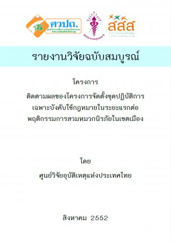 โครงการการติดตามผลของโครงการจัดตั้งชุดปฏิบัติการเฉพาะบังคับใช้กฏหมายในระยะแรกต่อพฤติกรรมการสวมหมวกนิรภัยในเขตเมือง มีวัตถุประสงค์เพื่อให้ทราบถึงสถานการณ์ของพฤติกรรมการสวมหมวกนิรภัยของผู้ใช้รถจักรยานยนต์ในพื้นที่จังหวัดนำร่องของโครงการฯ ภายหลังการดำเนินการในช่วงระยะเวลา 6 เดือนแรก เพื่อวิเคราะห์เปรียบเทียบถึงอัตราการสวมหมวกนิรภัยของผู้ใช้รถจักรยานยนต์ในพื้นที่จังหวัดนำร่องของโครงการฯ ภายหลังการดำเนินการในช่วงระยะเวลา 6 เดือนแรก เพื่อให้ทราบถึงการรับรู้และทัศนคติของผู้ใช้รถจักรยานยนต์ต่อการดำเนินงานในระยะแรกของโครงการจัดตั้งชุดปฏิบัติการเฉพาะบังคับใช้กฎหมายฯ และเพื่อสะท้อนถึงปัญหาหรือผลสำเร็จของโครงการฯ ในระยะแรก ในระดับของการปรับเปลี่ยนพฤติกรรมการสวมหมวกนิรภัยของผู้ใช้รถจักรยานยนต์ ทั้งในภาพรวมและในระดับพื้นที่จังหวัดนำร่อง
