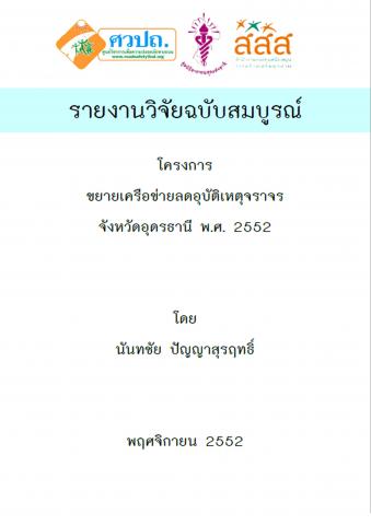 โครงการขยายเครือข่ายลดอุบัติเหตุจราจรจังหวัดอุดรธานี พ.ศ.2552 กรณีศึกษา อบจ.ห่วงใย TOYOTA ใส่ใจ ถนนสีขาว มีวัตถุประสงค์เพื่อสนับสนุนให้เกิดการขยายภาคีเครือข่ายลดอุบัติเหตุจราจรจังหวัดอุดรธานีไปสู่องค์การบริหารส่วนจังหวัดอุดรธานี (อบจ.) เพื่อสนับสนุนให้เกิดการขยายภาคีเครือข่ายลดอุบัติเหตุจราจรจังหวัดอุดรธานี ไปสู่ภาคธุรกิจ (บริษัทโตโยต้า มอเตอร์ ประเทศไทย จากัด) เพื่อศึกษาและถอดบทเรียนสำหรับการประยุกต์ใช้กับพื้นที่อื่น ๆ และเพื่อส่งเสริมกระบวนการเรียนรู้แบบมีส่วนร่วมระหว่างภาคีเครือข่ายลดอุบัติเหตุจราจร กับภาคีองค์การบริหารส่วนจังหวัด และภาคธุรกิจ โดยใช้การบูรณาการแบบเสริมพลัง