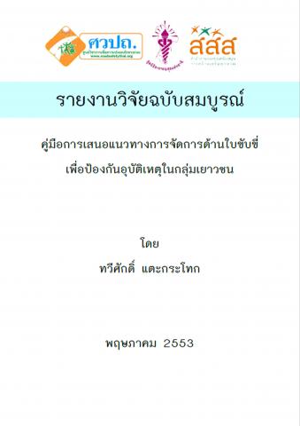 โครงการศึกษาแนวทางการจัดการด้านใบขับขี่เพื่อลดอุบัติเหตุ ในกลุ่มผู้ขับขี่รถจักรยานยนต์ที่ยังขาดประสบการณ์ระยะที่ 1 มีวัตถุประสงค์เพื่อทบทวนสถานการณ์ด้านอุบัติเหตุรถจักรยานยนต์ในกลุ่มอายุ 18-22 ปี เพื่อทบทวนความสัมพันธ์ระหว่างการจัดการเรียนรู้กับระบบการจัดการด้านใบอนุญาตขับขี่ที่เป็นอยู่ในปัจจุบันทั้งในประเทศและต่างประเทศ และเพื่อสังเคราะห์แนวทางการจัดการด้านใบขับขี่ที่เหมาะสมเพื่อลดอุบัติเหตุในกลุ่มผู้ขับขี่รถจักรยานยนต์ที่ยังขาดประสบการณ์ จากการดำเนินงานทำให้ได้รายงานการสำรวจประวัติการได้ใบขับขี่ การทดสอบการขับขี่ของเยาวชน และหน่วยงานที่เกี่ยวข้อง ซึ่งเป็นการเก็บข้อมูลด้านพฤติกรรม ทัศนคติ การเรียนรู้ตลอดจนความเข้าใจเกี่ยวกับการขับขี่รถจักรยานยนต์ที่ปลอดภัย ในกลุ่มเยาวชนช่วงอายุ 15 – 22 ปี ในสถาบันการศึกษาในระดับมัธยมศึกษา อาชีวะศึกษา และอุดมศึกษา ในจังหวัดพิษณุโลก และได้จัดทำคู่มือการเสนอแนวทางการจัดการด้านใบขับขี่ เพื่อป้องกันอุบัติเหตุในกลุ่มเยาวชน โดยนำเสนอแนวทางในการพัฒนาคุณภาพระบบใบขับขี่ของประเทศไทยสำหรับรถจักรยานยนต์ในกลุ่มเยาวชนเพื่อให้หน่วยงานที่เกี่ยวข้องได้นำไปใช้ประโยชน์ ข้อเสนอแนะในคู่มือนี้ได้จากการวิเคราะห์และสังเคราะห์งานวิจัยและเอกสารที่เกี่ยวข้องทั้งต่างประเทศและในประเทศ ซึ่งเป็นต้นแบบของการพัฒนาระบบบริหารจัดการเพื่อให้เกิดระบบการออกใบอนุญาตขับขี่ที่มีคุณภาพ โดยเน้นการพัฒนาสมรรถนะที่พึงประสงค์ของผู้ขับขี่อย่างรอบด้าน และสอดคล้องกับพัฒนาการที่ควรจะเป็น อย่างต่อเนื่อง นอกจากนี้ยังได้นำเสนอ 6 กลยุทธหลักเพื่อการยกระดับคุณภาพใบขับขี่ที่เรียกว่า ESCAPE