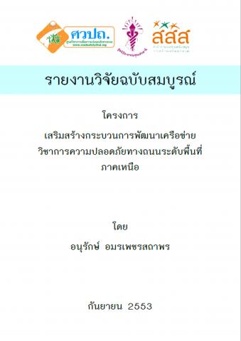 โครงการเสริมสร้างกระบวนการพัฒนาเครือข่ายวิชาการความปลอดภัยทางถนนระดับพื้นที่ภาคเหนือ มีวัตถุประสงค์ 1) เพื่อสนับสนุนให้เกิดการพัฒนาระบบข้อมูลด้านอุบัติเหตุทางถนนในระดับภาคและจังหวัด 2) เพื่อเสริมสร้างกระบวนการค้นหา ถอดบทเรียน และแลกเปลี่ยนเรียนรู้ในระดับภาค รวมทั้งการขยายผลบทเรียนดีๆ ไปสู่พื้นที่อื่นๆ 3) เพื่อสนับสนุนให้มีการจัดทำแผนที่ยุทธศาสตร์งานวิจัย และสนับสนุนการทำวิจัยและพัฒนาในประเด็นสำคัญ เพื่อให้เกิดภาคีเครือข่ายบูรณาการตามโครงการด้วยหลักการ 6 ยุทธศาสตร์หลักคือ การบังคับใช้กฎหมาย วิศวกรรมจราจร การประชาสัมพันธ์และให้ความรู้ การมีส่วนร่วม การบริการการแพทย์ฉุกเฉิน และการประเมินผล