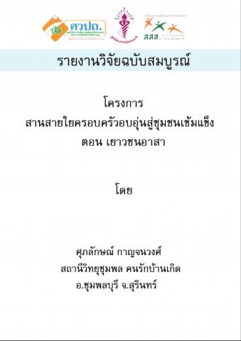 โครงการสานสายใย ครอบครัวอบอุ่น สู่ชุมชนเข้มแข็ง เป็นการนำเยาวชนกลุ่มเสี่ยงมาเข้าหลักสูตรการสร้างแกนนำเยาวชน เช่น วิชาทหาร กฎหมายทั่วไป ความรู้เรื่องกฎหมายจราจร การช่วยเหลือผู้บาดเจ็บ การบำเพ็ญประโยชน์สาธารณะ การป้องกันและแก้ไขปัญหาในชุมชน เป็นต้น ทำให้เยาชนมีการเปลี่ยนแปลงพฤติกรรมในทางที่ขึ้น มีจิตสำนึก ให้ความร่วมมือในการช่วยเหลือกิจกรรมชุมชน เกิดกระบวนการแลกเปลี่ยนเรียนรู้ร่วมกันระหว่างคนในชุมชนและเยาวชน ทุกคนมีส่วนร่วมและเป็นส่วนหนึ่งของการสร้างชุมชนให้อบอุ่น เข้มแข็งและน่าอยู่