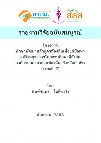 เนื่องจากการดำเนินโครงการศึกษาพัฒนาหลักสูตรท้องถิ่นเพื่อแก้ปัญหาอุบัติเหตุจราจรในสถานศึกษาที่สังกัดองค์กรปกครองส่วนท้องถิ่น จังหวัดลำปางในระยะที่ 1 สามารถนำไปขยายผลได้และมีความเห็นว่าควรให้มีการจัดทำโครงการต่อเนื่องเพื่อขยายไปสู่โรงเรียนอื่น ครอบครัวและชุมชนท้องถิ่น จึงได้จัดทำโครงการศึกษาและพัฒนาหลักสูตรท้องถิ่นเพื่อแก้ปัญหาอุบัติเหตุจราจรในสถานศึกษาที่สังกัดองค์การปกครองส่วนท้องถิ่น จ.ลำปาง (ระยะที่ 2) โดยมีวัตถุประสงค์เพื่อติดตามประเมินผลการใช้หลักสูตรของโรงเรียนต้นแบบ นำผลการดำเนินการโครงการระยะที่1 มาวิเคราะห์และนำสู่การพัฒนาด้านพฤติกรรมของนักเรียนที่เกิดความเสี่ยงต่อการเกิดอุบัติเหตุจราจร/การบาดเจ็บในสถานศึกษาลดลง สามารถนำไปเผยแพร่ในครอบครัวและ ชุมชน เพื่อขยายการจัดทำหลักสูตรด้านความปลอดภัยในการใช้รถใช้ถนนเพิ่มขึ้นและมีการจัดการเรียนการสอนแบบบูรณาการ เยาวชนเกิดความตระหนัก และลดพฤติกรรมเสี่ยง ในด้านการใช้รถใช้ถนน