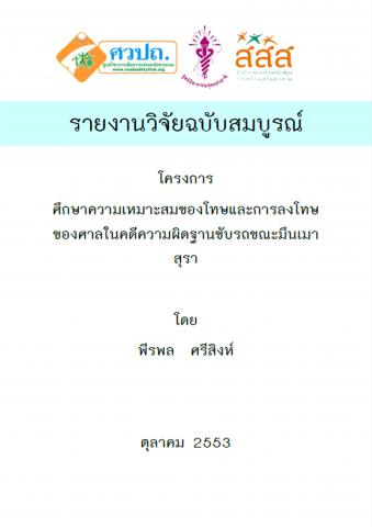 โครงการศึกษาความเหมาะสมของโทษและการลงโทษของศาลในคดีความผิดฐานขับรถขณะมึนเมาสุรา มีวัตถุประสงค์ 1)เพื่อทำการรวบรวมคำพิพากษาของศาลจากคดีความผิดฐาน “ขับรถขณะมึนเมาสุรา” ในเรื่องของการพิจารณาวินิจฉัยการกระทำความผิด การใช้ดุลพินิจในการลงโทษ ตลอดจนมาตรการเพื่อสร้างความมั่นคงทางสังคมภายใต้ภาระหน้าที่ของศาล และทำการสังเคราะห์เพื่อเป็นฐานองค์ความรู้และทำการเผยแพร่ให้กับศาลและหน่วยงานด้านความยุติธรรมต่างๆที่มีหน้าที่เกี่ยวข้องได้นำไปใช้ประโยชน์ 2)เพื่อศึกษาทัศนคติและมุมมองของผู้พิพากษาต่อการบังคับใช้กฎหมาย “เมาแล้วขับ” พร้อมทั้งนำข้อมูลมาแลกเปลี่ยนเพื่อสร้างการรับรู้ และแนวทางปฏิบัติในการกำหนดโทษและการลงโทษ ให้เป็นไปในแนวทางเดียวกัน 3)เพื่อนำองค์ความรู้ที่ได้มาทำการพิจารณาและสังเคราะห์เข้ากับหลักทฤษฎีการกระทำความผิดทางอาญาและการลงโทษผู้กระทำความผิด รวมทั้งหลักการดำเนินคดีอาญาและวิธีพิจารณาคดีอาญาในชั้นศาล อันจะเป็นการตรวจสอบว่าคดี “ความผิดฐานขับรถขณะมึนเมาสุรา” ควรที่จะมีการกำหนดโทษและกำหนดวิธีการดำเนินคดีรวมทั้งวิธีการพิจารณาคดีอย่างไรจึงจะเหมาะสมและสามารถสร้างนิติสภาวะที่เป็นการยอมรับในจิตใจของผู้ที่มีเงื่อนไขที่จะกระทำความผิด