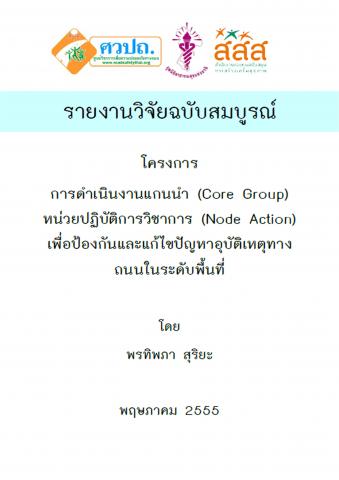 โครงการดำเนินงานแกนนำ (Core Group) หน่วยปฏิบัติการวิชาการ (Node Action) เพื่อป้องกันและแก้ไขปัญหาอุบัติเหตุทางถนนในระดับพื้นที่ 5 พื้นที่ ประกอบด้วย 1) ภาคเหนือ จ.ลำพูน 2) ภาคกลาง พื้นที่ถนนพระราม 2 ซึ่งพาดผ่าน จ.สมุทรสงคราม สมุทรสาคร ราชบุรีและเพชรบุรี 3) ภาคตะวันออกเฉียงเหนือ จ.มหาสารคามและ 4) จ.อุบลราชธานี 5) ภาคใต้ จ.สตูล มีวัตถุประสงค์เพื่อให้เกิดแกนนำและเครือข่ายวิชาการระดับปฏิบัติการและระดับขับเคลื่อนในพื้นที่ ที่สามารถเชื่อมประสานการทำงานวิชาการร่วมกับแกนนำคนทำงานในพื้นที่ได้อย่างเป็นรูปธรรม โดยได้พัฒนาเครื่องมือ ชุดความรู้ เพื่อสนับสนุนการทำงานให้เกิดพื้นที่เรียนรู้จากงานวิจัยเชิงปฏิบัติการผ่านกระบวนการสร้างการเรียนรู้อย่างมีส่วนร่วมของคนในพื้นที่ สุดท้ายผลลัพธ์ที่เกิดขึ้นจะมีการถอดบทเรียน สังเคราะห์ความรู้ จากผลการดำเนินงานของทั้ง 5พื้นที่ และจัดเวทีแลกเปลี่ยนเรียนรู้ เพื่อผลักดันในเกิดกลไกการขับเคลื่อนงานและข้อเสนอเชิงนโยบาย ที่เสริมสร้างความปลอดภัยทางถนนได้อย่างเข้มแข็งต่อเนื่อง