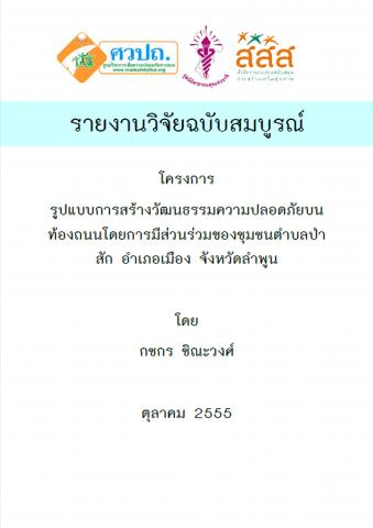 โครงการรูปแบบการสร้างวัฒนธรรมความปลอดภัยบนท้องถนน โดยการมีส่วนร่วมของชุมชนตำบลป่าสัก อำเภอเมือง จังหวัดลำพูนเป็นการทำงานในระยะที่ 1 มีเป้าหมายที่เพื่อมุ่งเน้นให้เกิดการสร้างความร่วมมือระหว่างหน่วยงาน องค์กรที่เกี่ยวข้องกับการขับเคลื่อนเรื่องการสร้างวัฒนธรรมความปลอดภัยบนท้องถนน ทั้งในระดับพื้นที่ และระดับจังหวัด โดยการจัดทำข้อมูลความรู้ และผู้ที่เกี่ยวข้องกับเรื่องความปลอดภัยบนท้องถนน และการจัดเวทีแลกเปลี่ยนเรียนรู้ แสวงหาและพัฒนาศักกภาพแกนนำ Change Agent และพัฒนาให้เกิดโครงการวิจัยที่สามารถพัฒนาสู่การเป็นพื้นที่ต้นแบบในด้านการสร้างวัฒนธรรมความปลอดภัยบนท้องถนน รวมทั้งพัฒนาให้เกิดระบบการจัดการฐานข้อมูลต้นแบบเรื่องความปลอดภัยบนท้องถนนร่วมกันระหว่างองค์กรปกครองส่วนท้องถิ่น ตำบลป่าสัก หน่วยงานที่เกี่ยวข้อง และชุมชนในระดับตำบล