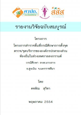 โครงการสำรวจพื้นที่กรณีศึกษาการตั้งจุดตรวจ/จุดบริการขององค์กรปกครองส่วนท้องถิ่นในช่วงเทศกาลสงกรานต์ มีวัตถุประสงค์เพื่อศึกษาหลักเกณฑ์โดยทั่วไปขององค์กรปกครองส่วนท้องถิ่นในการตั้งจุดตรวจ/จุดบริการ สำรวจพฤติกรรมในการตั้งจุดตรวจ/จุดบริการในช่วงเทศกาลสงกรานต์ในพื้นที่กรณีศึกษา ค้นหาและถอดบทเรียนแนวทางการตั้งจุดตรวจ/จุดบริการในกรณีศึกษาที่ดี เพื่อศึกษาผลสัมฤทธิ์ของการตั้งจุดตรวจ/จุดบริการของพื้นที่กรณีศึกษา และเพื่อศึกษาการใช้งบประมาณในการทำกิจกรรมที่เกี่ยวกับความปลอดภัยทางถนนขององค์กรปกครองส่วนท้องถิ่น