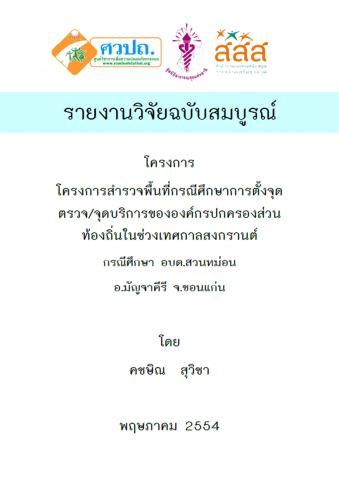 โครงการสำรวจพื้นที่กรณีศึกษาการตั้งจุดตรวจ/จุดบริการขององค์กรปกครองส่วนท้องถิ่นในช่วงเทศกาลสงกรานต์ - อบต.สวนหม่อน อ.มัญจาคีรี จ.ขอนแก่น