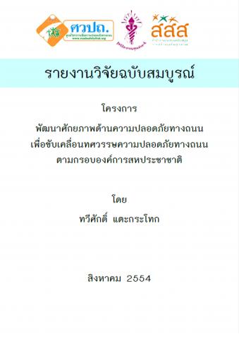 โครงการพัฒนาศักยภาพด้านความปลอดภัยทางถนนเพื่อขับเคลื่อนทศวรรษความปลอดภัยทางถนนตามกรอบองค์การสหประชาชาติ มีวัตถุประสงค์เพื่อพัฒนาศักยภาพด้านความปลอดภัยทางถนนของนักวิชาการให้สอดคล้องกับวัตถุประสงค์ของศูนย์วิชาการความปลอดภัยทางถนน และเพื่อนำแนวทางที่ได้จากการประชุมในต่างประเทศ มาประยุกต์เข้ากับแผนที่นำทางเชิงกลยุทธ์ทศวรรษความปลอดภัยทางถนนของประเทศไทย โดยการการเข้าร่วมการประชุมความร่วมมือด้านความปลอดภัยทางถนนตารมกรอบองค์การสหประชาชาติ ระหว่างวันที่ 11-13 เมษายน 2554 ณ กรุงลอนดอน ประเทศอังกฤษ