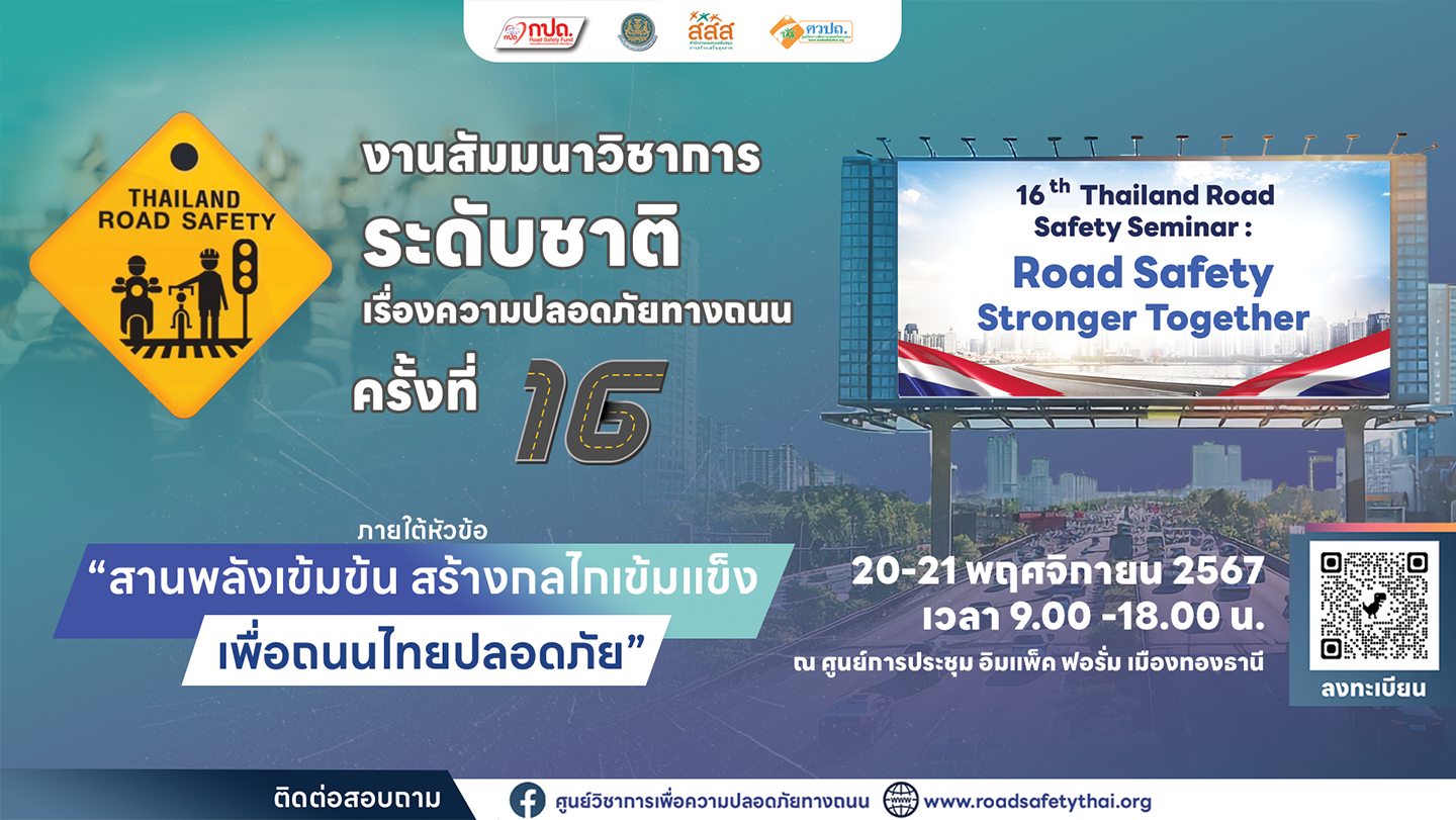สัมมนาวิชาการระดับชาติ เรื่อง ความปลอดภัยทางถนน ครั้งที่ ๑๖ ได้ที่นี่